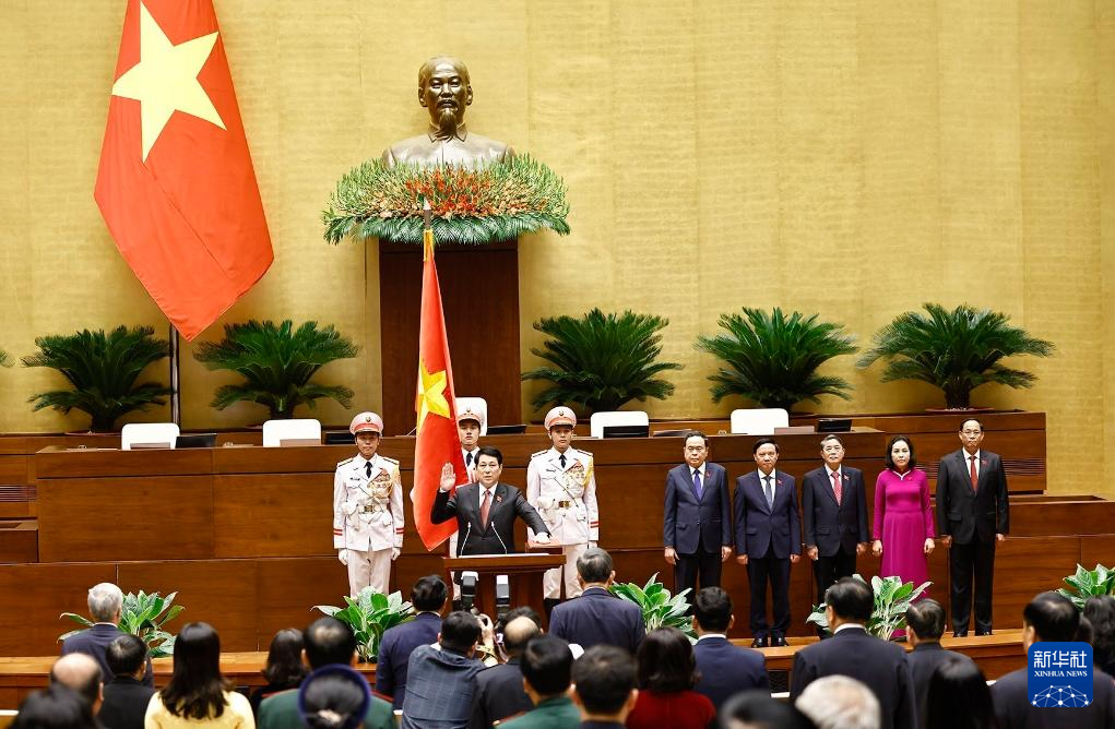 ??梁強隨后宣誓就職。他在發(fā)表就職演說時表示,將根據(jù)越南社會主義共和國憲法以及黨、國家和人民賦予的任務,履行好國家主席的職責,繼續(xù)保持和加強黨內的高度團結,與全黨全軍一道弘揚民族大團結力量。